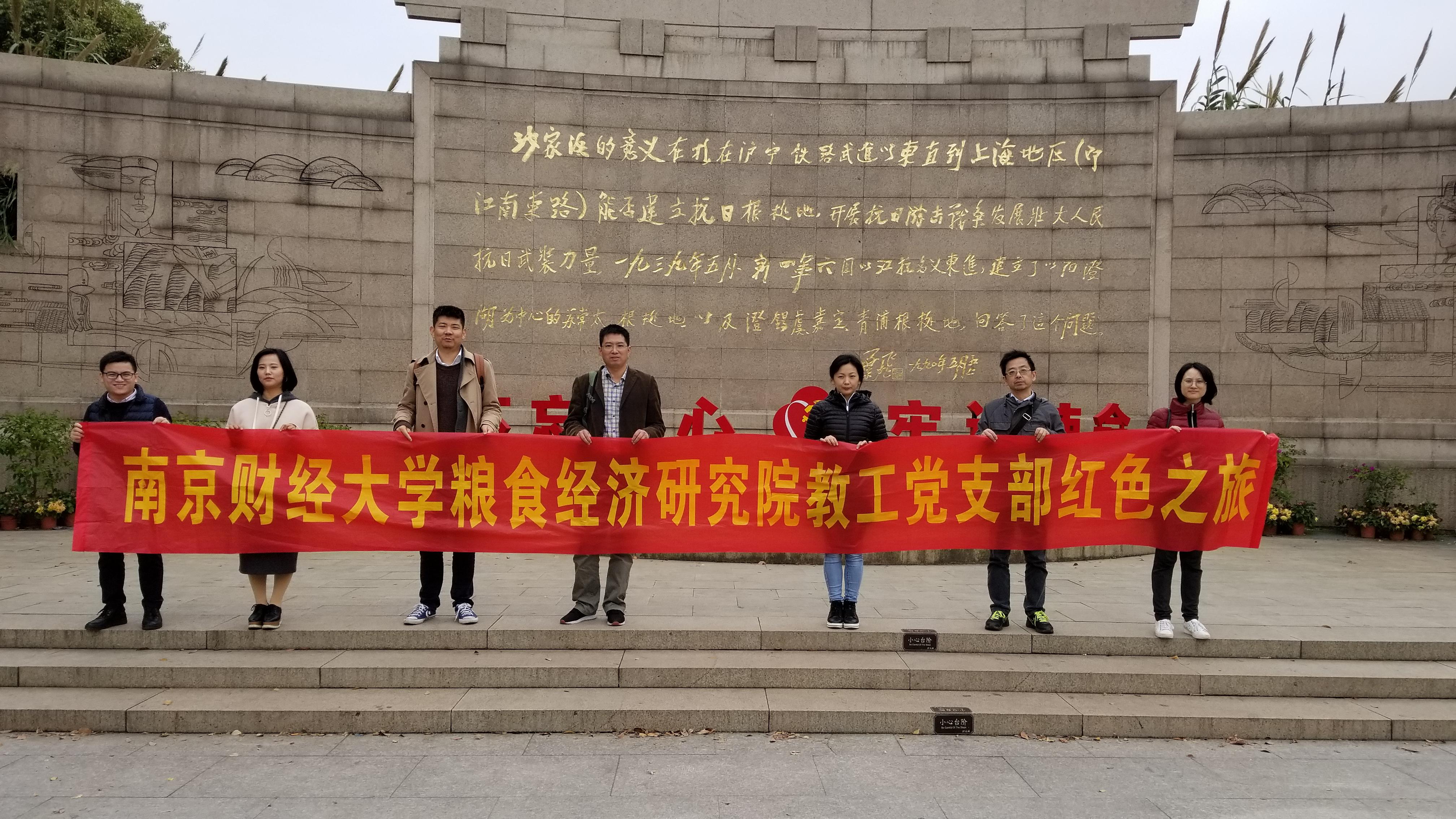 为瞻仰红色遗迹,缅怀先烈遗志,追忆革命历史,2018年11月17日,粮食经济研究院教工党支部全体党员赴沙家浜红色革命教育基地开展“学传统,强党性”主题党日活动,重温入党誓词,不忘入党初心,提升党性修养。