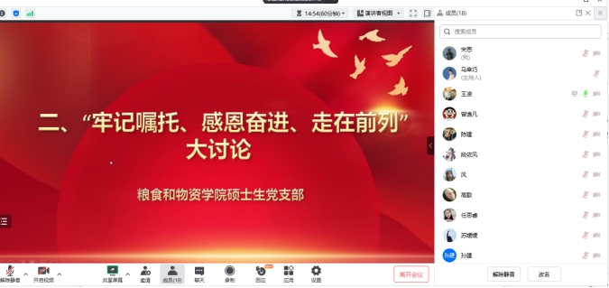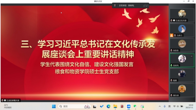 7月1日,在党的102岁生日这天,yl23411永利集团官网研究生党支部以线上形式组织开展庆“七一”主题党课学习活动。本次学习活动共三项内容,一是重温习近平总书记“七一”重要讲话;二是开展“牢记嘱托、感恩奋进、走在前列”大讨论;三是深入学习习近平总书记在文化传承发展座谈会上重要讲话精神。