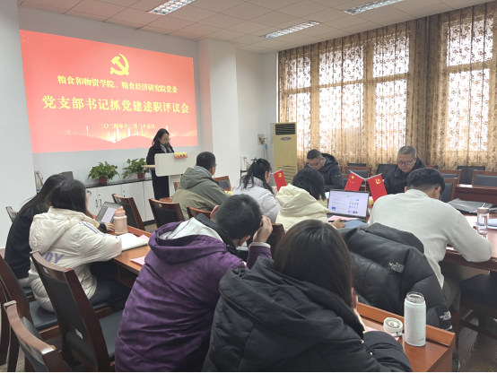 教工党支部书记胡迪、博士生党支部书记张欢、硕士生党支部书记钱煜昊分别从政治理论学习、履行支部党建责任情况、支部建设、党员发展、教育管理、支部存在的突出问题及整改措施等方面依次述职,总结支部一年来取得的成绩、反思工作中存在的不足、今后工作开展思路和方向。
