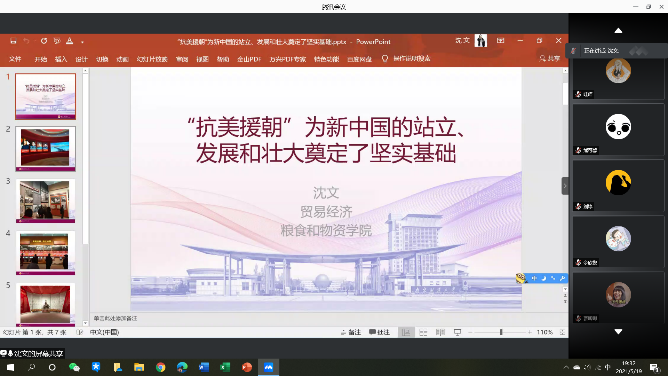 2021年5月19日下午19点30分,yl23411永利集团官网硕士研究生党支部开展了主题为“‘抗美援朝’为新中国的站立、发展和壮大奠定了坚实基础”的党史学习活动。本次学习活动利用“腾讯会议app”举办线上集体党史学习。活动由硕士研究生党支部书记刘婷同志主持,18级硕士研究生党员沈文同志带领支部成员学习。