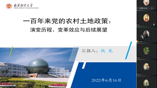 最后,张书记对本次的分享进行了总结和评价,表示钱龙老师的分享对百年农地政策改革的系统回顾,体现了自身业务和党史学习深入结合,后续需要加强此类研究,在学术研究中加深对党的历史和政策导向的认知。