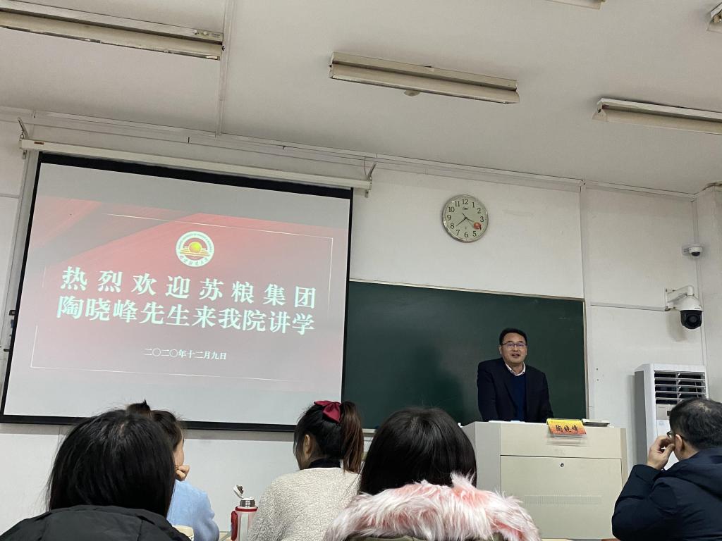 2020年12月9日下午,江苏粮食集团企业管理部部长兼储备粮中心主任陶晓峰先生应yl23411永利集团官网邀请,在我校仙林校区博文楼411室,与我院师生就“粮食储备业务的政策与实践”的主题做出了精彩的分享,此次交流会由yl23411永利集团官网书记张圣兵教授主持。