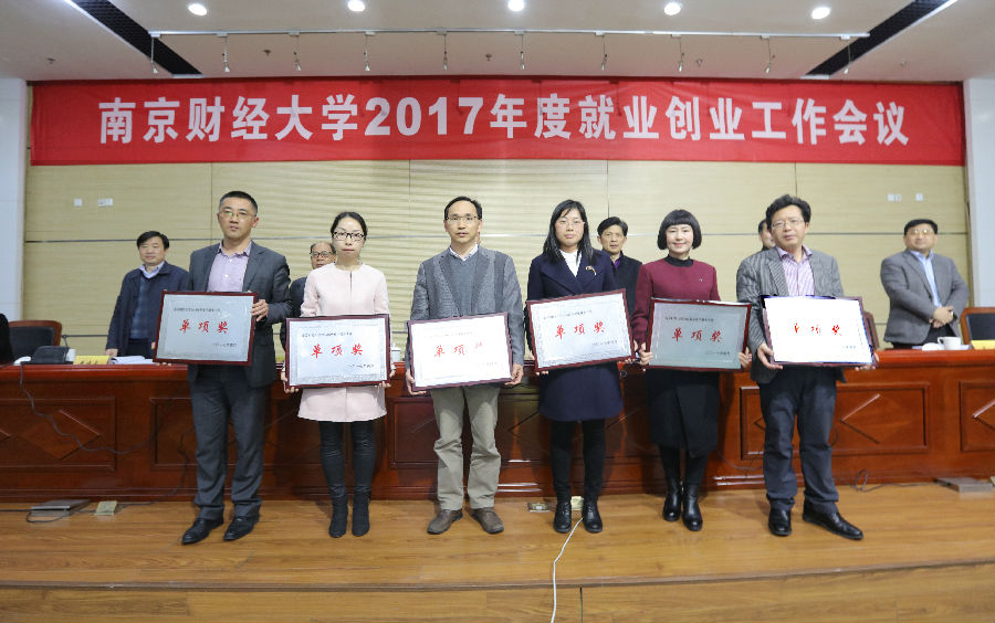 副校长程永波宣读了《关于2016年度毕业生就业工作的表彰决定》。外国语学院、国际经贸学院、营销与物流管理学院、艺术设计学院、经济学院获得“2016年度就业管理先进奖”。金融学院、国际经贸学院、信息工程学院、应用数学学院、管理科学与工程学院、财政与税务学院获得“2016届统招本科毕业生就业率单项奖”。粮食经济研究院、管理科学与工程学院、财政与税务学院获得“2016届毕业研究生就业率单项奖”。外国语学院、应用数学学院、会计学院获得“2016届统招本科毕业生升学出国率单项奖”。随后,校领导为获奖学院代表颁奖。我院李光泗书记上台领奖。