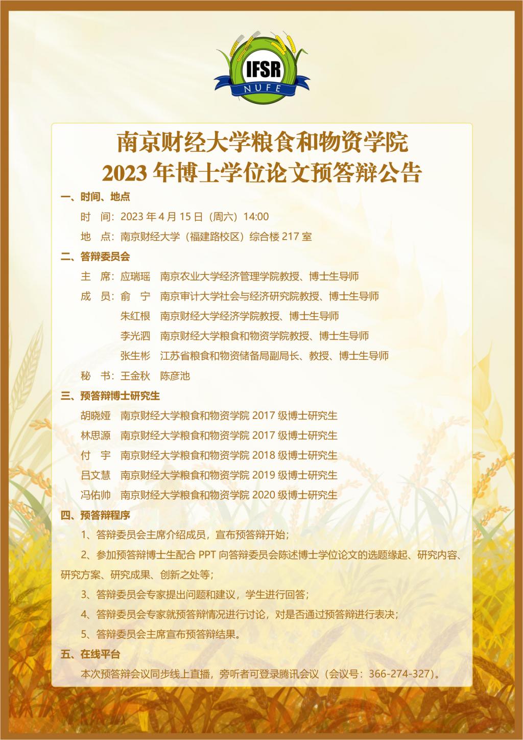 yl23411永利集团官网2023年博士学位论文预答辩公告